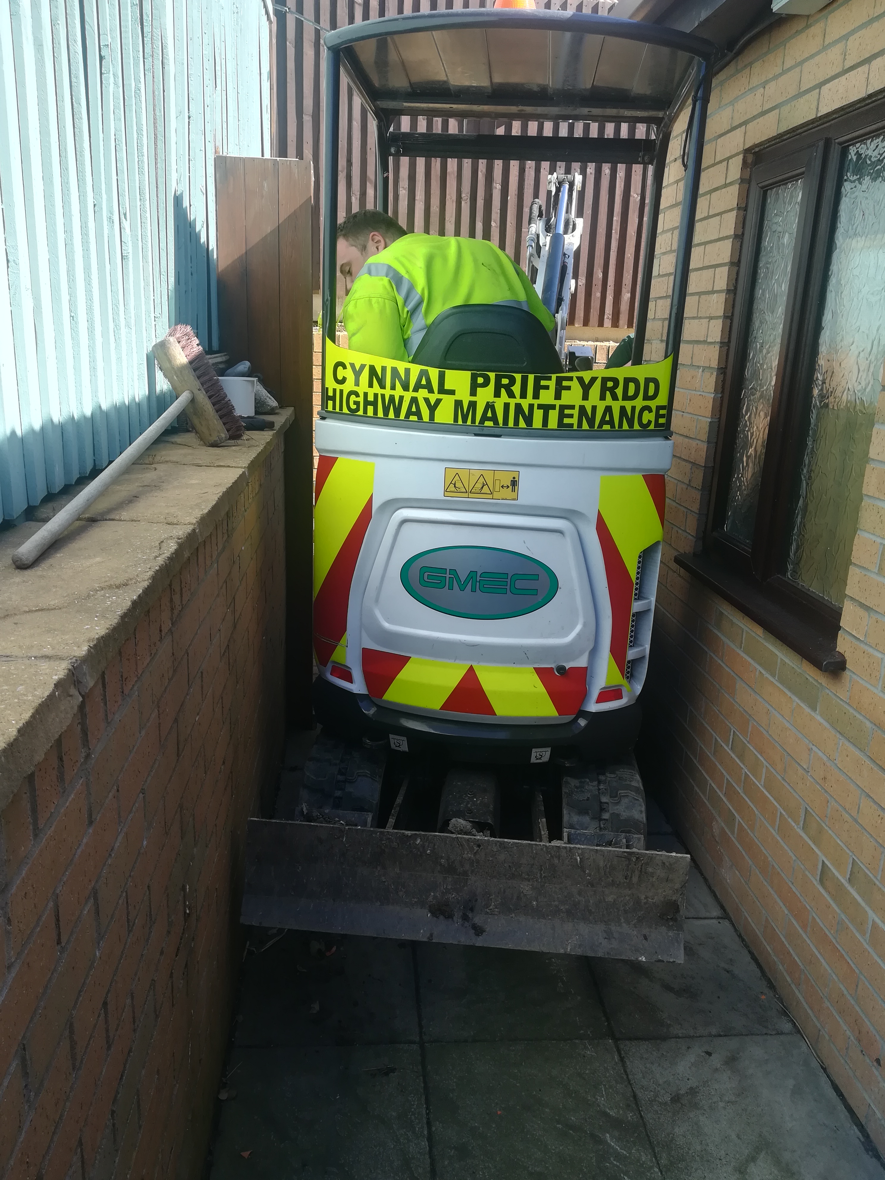 If any debris ends up on the roads or pavements our road sweeper can clean up straight away and the on board pressure washer can clean up. Our excavator is one of the smallest available, and with its telescopic tracks is small enough to go through a standard doorway or garden gate yet powerful enough for a variety of works. It comes with a mounted hydraulic and hand held breakers that can be connected to reduce the hazards associated with long lengths of trailing hoses when working away from the utility vehicles.